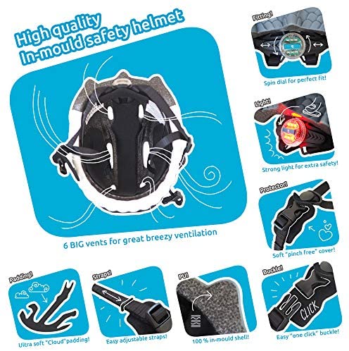 TESTED, APPROVED AND SAFE – Feel relaxed knowing your childrens safety comes first. The leopard and giraffe bicycle helmet is tested and approved. EN1078 certified in Europe and CPSC certified in the USA. For extra safety the helmet have adjustable chin straps and a solid fit wheel with built in LED light – Providing the perfect fit and extra visibility for your child!: TIRED OF REMINDING YOUR CHILD TO WEAR A BICYCLE HELMET That wont be a problem with the Crazy Safety Animal helmet series. The helmet is a very popular choice and the unique and iconic look makes sure your child will never forget their new bicycle helmet.