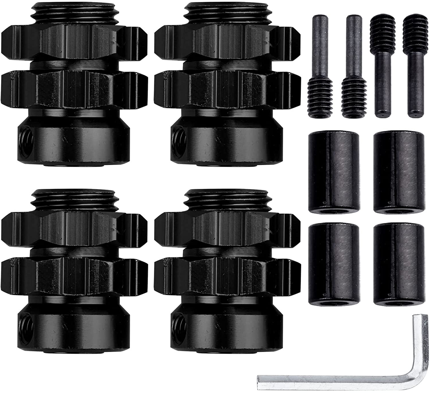 CrazyHobby Aluminum 17mm Wheel Hubs/Nuts Splined for 1/10 Traxxas E-Revo Summit, Set of 4 (Black)