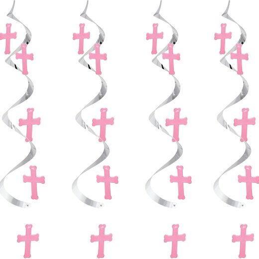 Creative Converting 5-Count Dizzy Dangler Hanging Cross Streamers, Silver/Pink