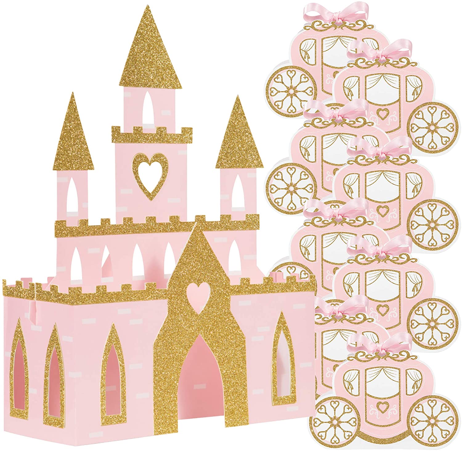Creative Converting Pink & Gold Princess Party Accessories Bundle | Carriage Favor Treat Boxes with Ribbon, Castle Decor Centerpiece | Birthday Party Supplies for Girls, Twins, First Bday, Baby Shower