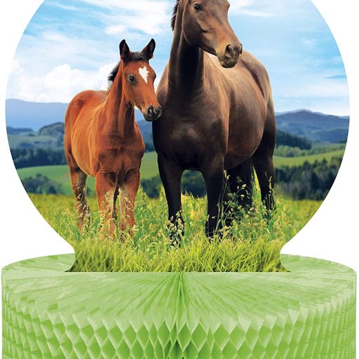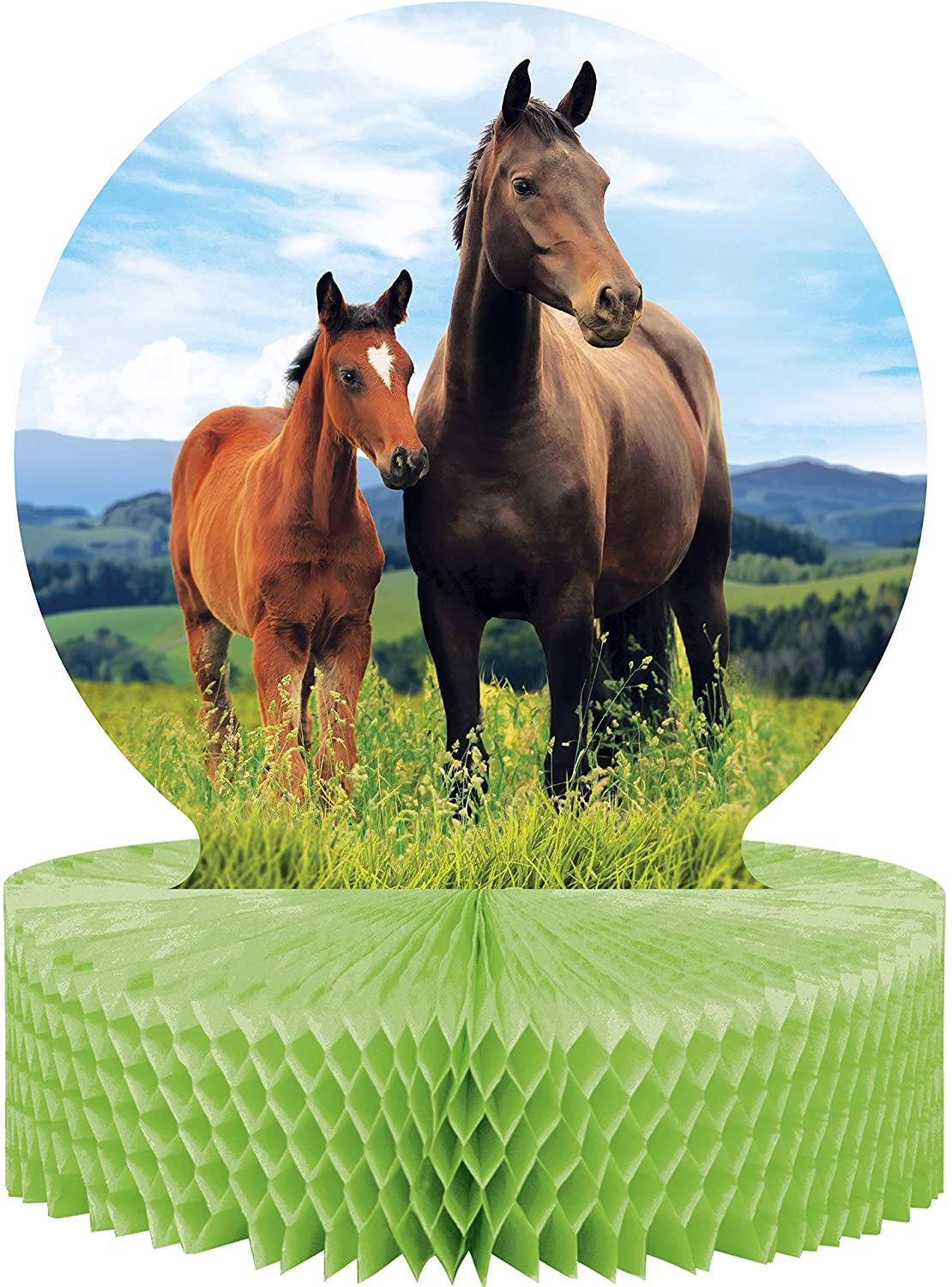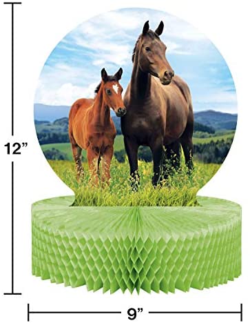 Accessorize your table with this wild horse centerpiece. Featuring beautiful horses placed on top of a green honeycomb base, This centerpiece is the perfect thing to complete your party theme. Measuring 9 X 12 And sold individually, This centerpiece can be paired with any other wild horse party supplies.