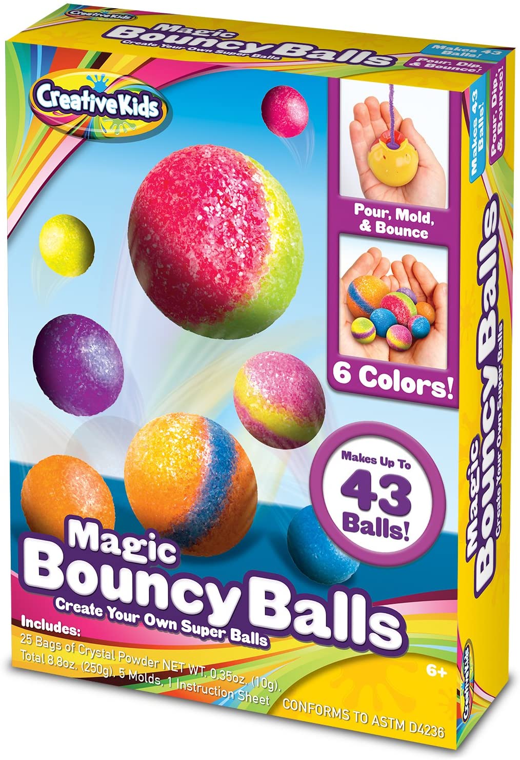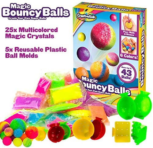 Creative Kids DIY Magic Bouncy Balls – Create Your Own Crystal Powder Balls Craft Kit for Kids – Includes 25 Bags of Multicolored Crystal Powder & 5 Molds – Makes Up to 43 Balls