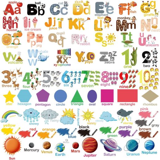 Be the first to review “Cualfec 9 Sheet Alphabet Number Color Weather Planet Learning Educational Wall Decals Alphabet Weather Color Educational Wall Stickers Classroom Wall Decals for Kids Playroom Bedroom Decorations” Cancel reply