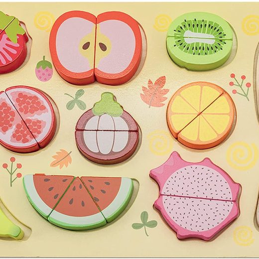 CUCOS Wooden Cutting Puzzles for Kids Ages 1-5 Years Old, Fruit Toddler Puzzles, Learning Toys Educational Gift for Girls and Boys