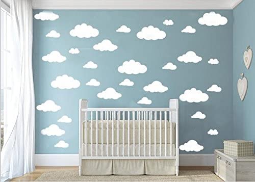 CUGBO 31pcs Big Clouds Vinyl Wall Decals DIY Wall Sticker Removable Wall Art Decor 4-10 inch for Living Room Nursery Kids Room(White)