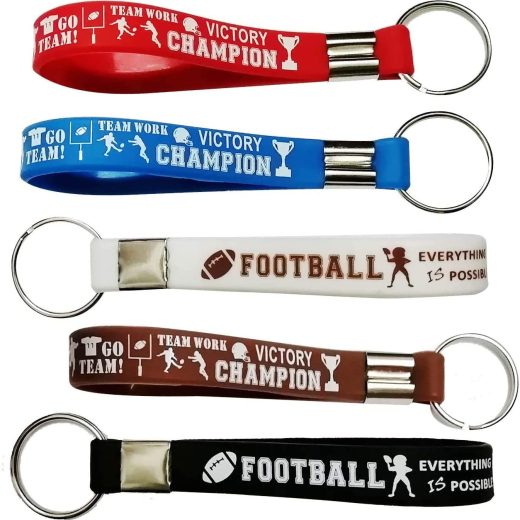 Color Red,blue,white,brown,black Material Silicone Style 12pcs Football Keychains CupaPlay