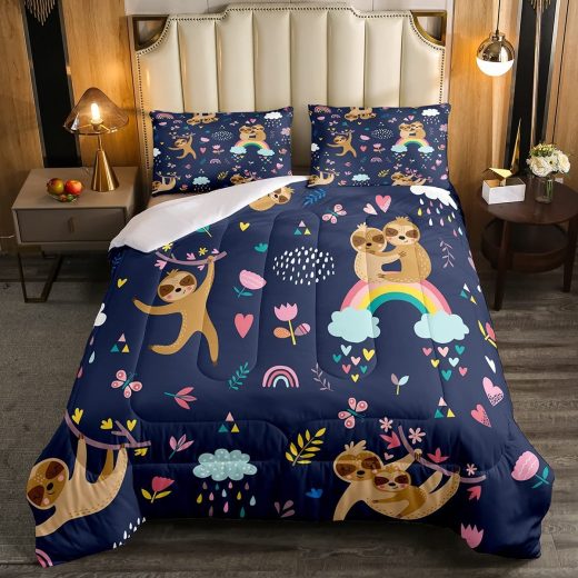 Be the first to review “Cute Brown Sloth Comforter Set, Cartoon Animal and Flowers Rainbow Print Bedding Set for Kids Girls Boys Teens, Twin Size Quilted Duvet with 1 Pillowcase Decor Bedroom, Dark Blue” Cancel reply