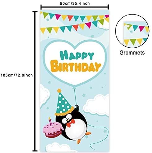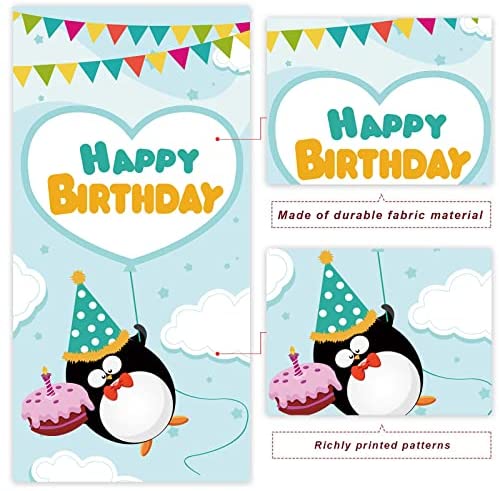 Cute Cartoon Penguin Happy Birthday Banner Backdrop Background Photo Props Animal Theme Decor for Winter Christmas Girl Princess Boy 1st Birthday Party Toddler Baby Shower Favors Supplies Decorations