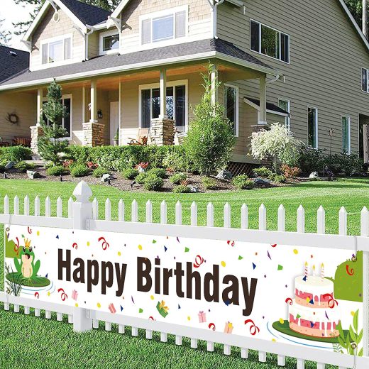 Cute Frog Birthday Banner, Frog Happy Birthday Large Banner,Prince Frog Birthday Picks Kids Birthday Backdrop Banner Yard Sign Outside Decor 9.8X1.6 Ft