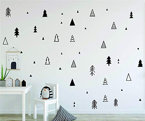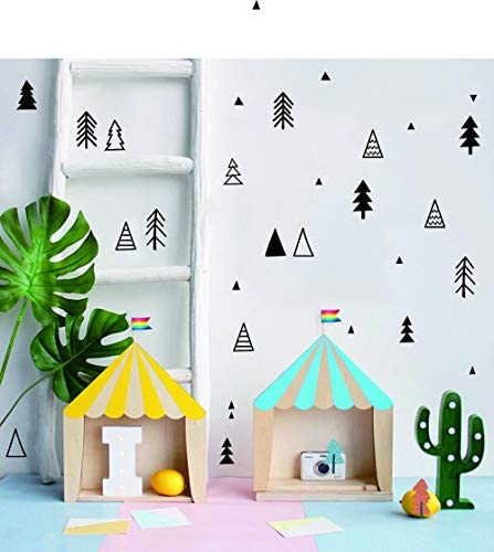 Cute Triangle with Trees Art Decal for Walls Forest Vinyl Sticker Kids Nursery Nordic Home Decor Boy Girls Child Bedroom Playroom Decoration YMX58 (Black)