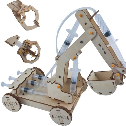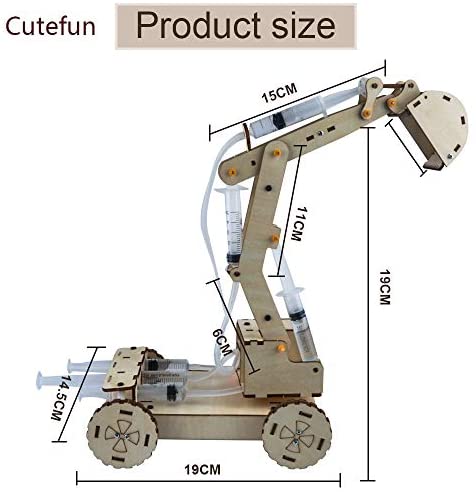 Cutefun Hydraulic Excavator 3-in-1 Wooden Kit, STEM Toys for Children Science Technology Learning Education, DIY Assembly Model Set, 3D Wooden Puzzle Craft Toy