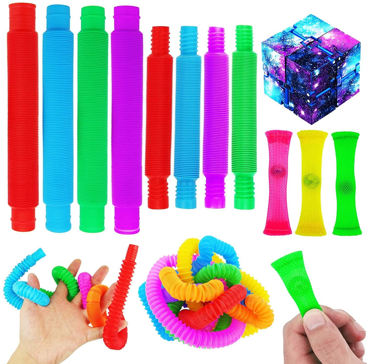 CXP Good Goods 4 Pack Stress Relief and Anxiety Relief Fidget Toys,Infinity Cube,Marble Mesh