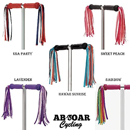 Adorable and Colorful Streamers fit most Bicycles, Kids Bikes, Balance Bikes, Small Bicycles and Kids Scooters. With 18 band ribbons made of different color types of U.S.A Party, Hawaii Sunrise, Sweet Peach, Lavender, Rainbow.Best Gift for Daughter, Son, Girls, Boys, Granddaughter, Grandson, Grandchild, Sisters and Brothers.