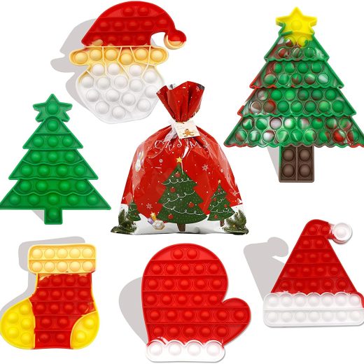 Cykapu 6 Pcs Christmas Set Pop Fidget Toys, Push Bubble Fidget Sensory Toys, Christmas Hat, Christmas Tree Stress Toys, Autism ADHD Adult and Child Pressure Decompression Toys, Set