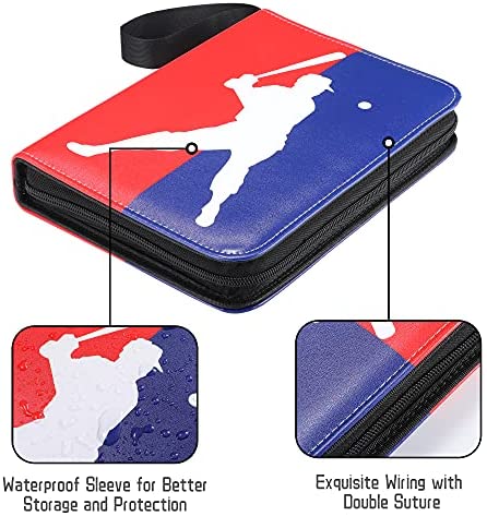 What You Get in Package Includes 400 Pockets Baseball Card Binder with 40 Platinum 4-pocket Sleeve for Trading Cards ONLY, Baseball Trading Cards are NOT INCLUDED. Any problem with the products, feel free to contact, we will solve immediately. 400 Pockets to Meet Collection NeedsOur Baseball Card Binder Comes with 50 Platinum 4-Pocket Pages. It Means that it can holds up to 400 baseball cards (Each page could hold 8 cards). It is refillable/expandable, It means that you can arbitrarily increase or reduce the number of internal Pages. Waterproof PU fabric & Durable Card Sleeves Our baseball trading card binder are made of high quality waterproof PU fabric for easy cleaning. When children go out to play with their beloved cards, they can be easily wiped even if they are accidentally covered with a little stain. Card sleeves are made of clear polypropylene, waterproof and durable not easy to break, good to protect your card from fading and stain. Baseball Card Binder with Zipper & Strap Closed zipper design provides multiple protections so that the inner page or cards does not fall. Great for Baseball cards collection and storage, or as a binder for school supplies. Hand strap design is very convenient to carry, You can take your baseball trading card anywhere. Compatible with Most TCG on MarketCompatible with most tcg on market. Suitable for Pokemon, YuGiOh, MTG, Baseball, Football, Basketball, Animal Crossing Amiibo Cards, Unstable Unicorns Base Game, Monopoly Deal Cards, Phase 10 Card Game, Dutch Blitz Card Game and more. (Compatibile with most standard sized trading cards with sleeves on.)