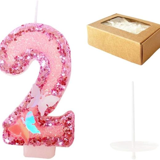 Dadybaby Birthday Candles Number 2,Pink Glitter Happy Birthday Cake Candles Handmade Sequin Numeral Candle