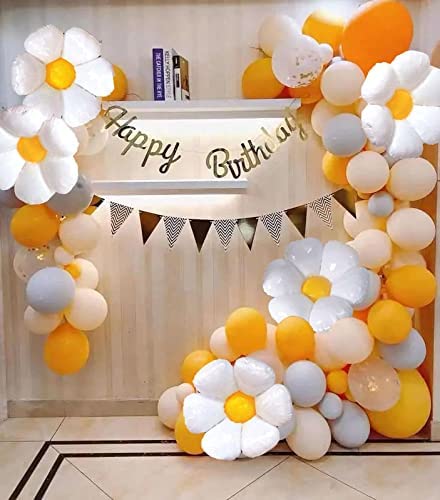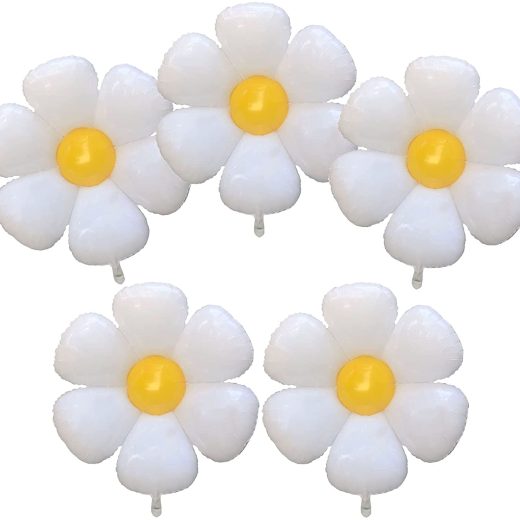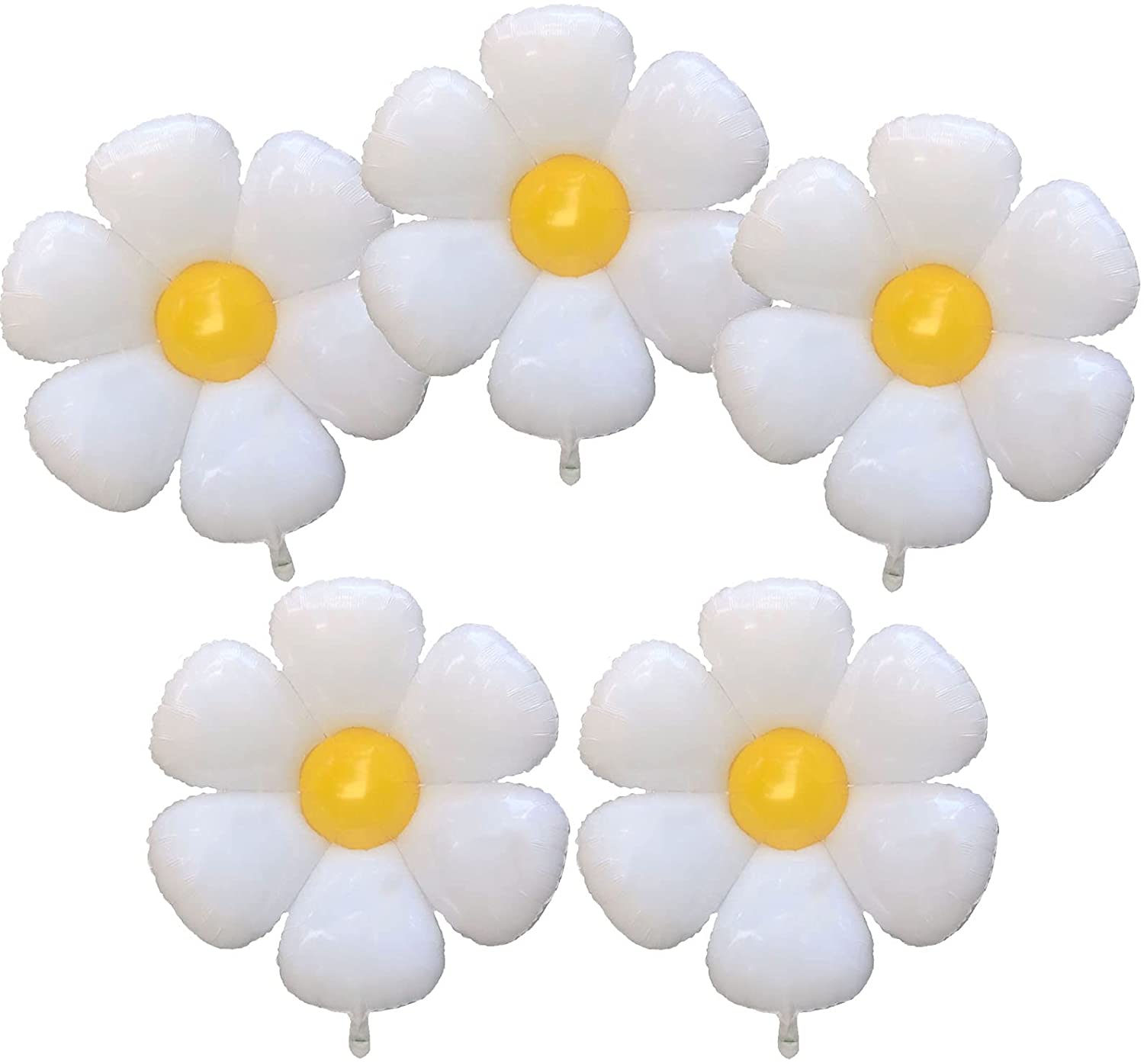 Daisy Balloons Huge Flower Balloon 30 Inch White Daisy Party Decorations Large Foil Mylar Balloons Birthday Decoration Wedding Décor 5Pcs