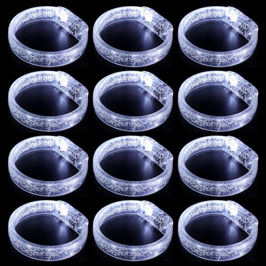 DAOKEY LED Light up Bracelets, White Glow Wristbands Party Favors Toys Supplies for Birthday, Halloween, Carnivals Parties, Clear Case 12 Pack