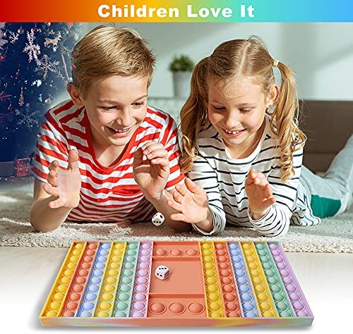 Dapfla Big Pop It Fidget Game Chess Board with Dice, Portable Poppit Macaron Push Bubble Fidget Sensory Toy, Popit Fidget Trading Games Rubber Popper Game for Kids and Adults, Stress Relief Chessboard