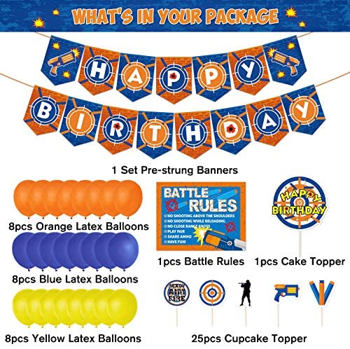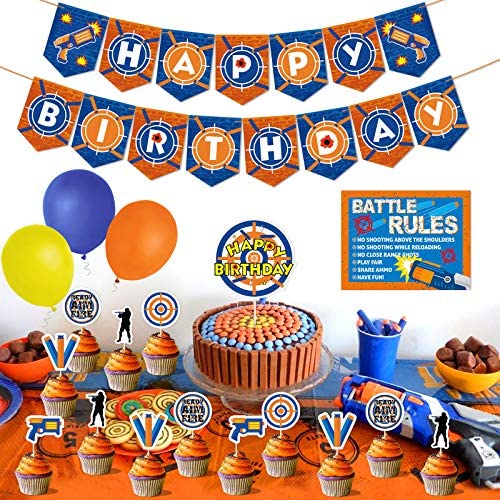 GREAT DART WAR BIRTHDAY DECORATIONS – Start your dart war party right now with this party decorations kit. Transform your room into a dart battlefi…