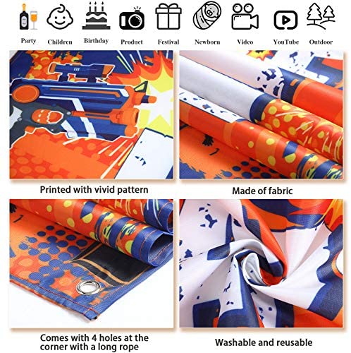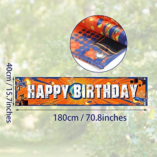 Dart War Party Supplies Dart War Happy Birthday Banner Horizontal Fabric Happy Birthday Yard Sign 71 x 16 Inch Blaster Battle Gun Birthday Party Decorations for Kids Boys Birthday Party