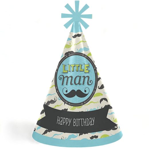 Everyone will be ready to celebrate the guest of honor’s birthday when wearing a Dashing Little Man Mustache party hat. This set of 8 (Standard Size) birthday party hats is a great addition to your event and is sure to get everyone smiling – especially the guest of honor! Each Dashing Little Man Mustache Party – Cone Happy Birthday Party Hats for Kids and Adults perfectly themed and has a festive star at the top. These party hats even come with a “Happy Birthday” printed on them! Be sure to have your camera ready because this Dashing Little Man Mustache party hats are going to give you some great photos!