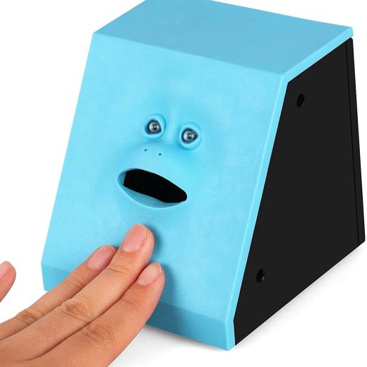 DDSKY Face Bank Coin Eating Savings Bank, Blue Coin Money Box Piggy Banks for Kids Battery Operated (Blue)