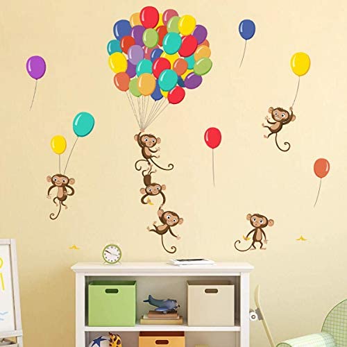 decalmile Balloons Monkey Wall Stickers Animals Kids Wall Decals Baby Nursery Children Bedroom Living Room Wall Decor