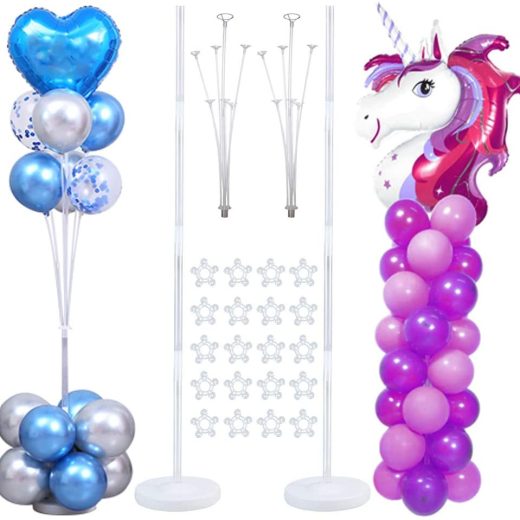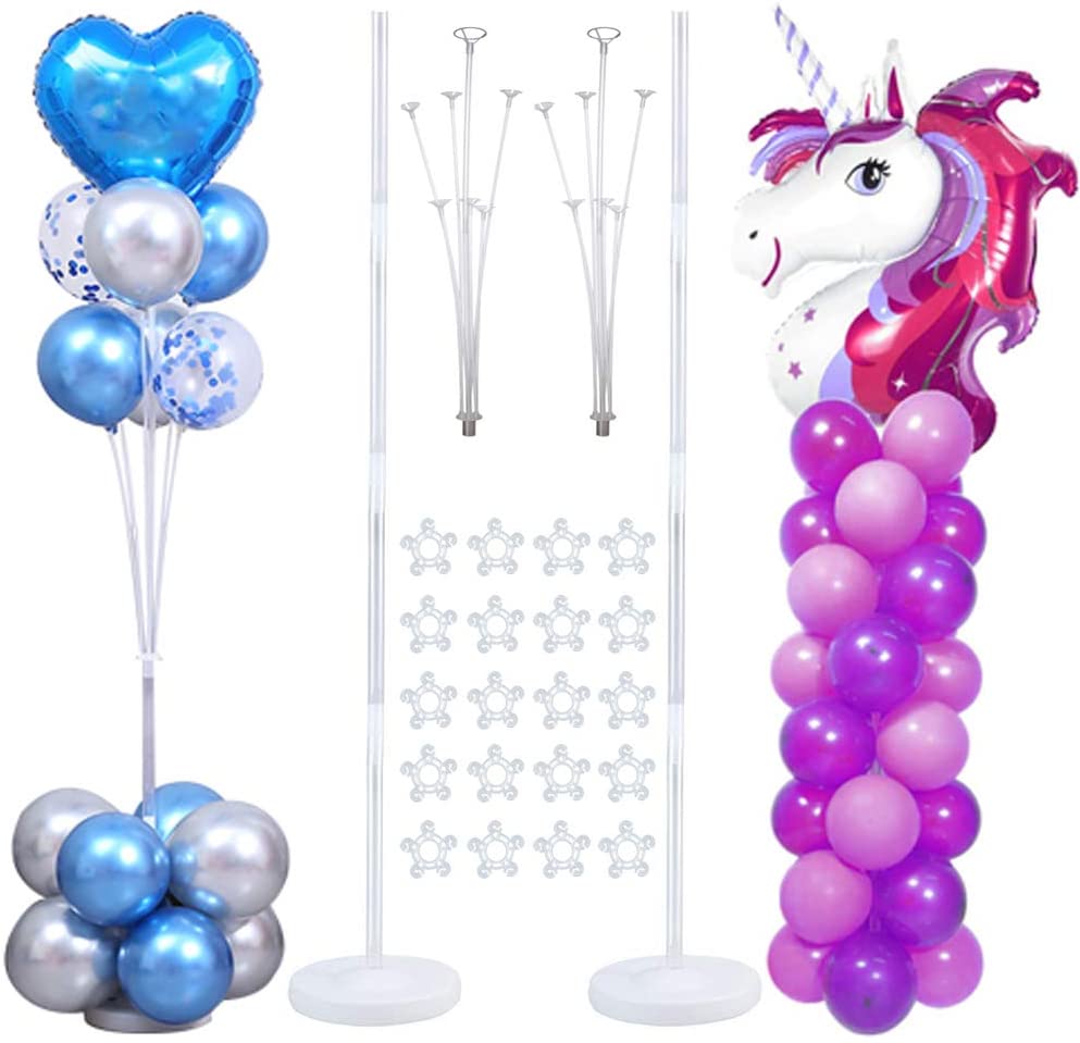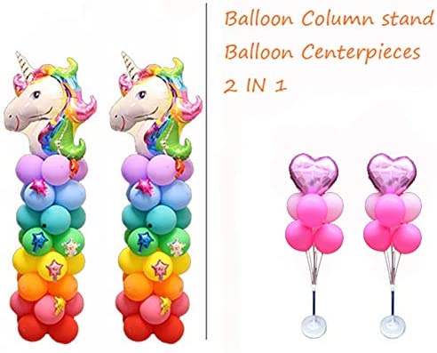 Decojoy Balloon Stand Kit, 2 Sets Thicken Multifunctional Balloon Column Holder and Centerpieces for Floor or Table 2IN1, Weights Base and Pole for Party, 5FT Tall Adjustable, 2021 Upgraded Balloon Tower Backdrop Stand for Christmas|Birthday|Baby Shower Parties
