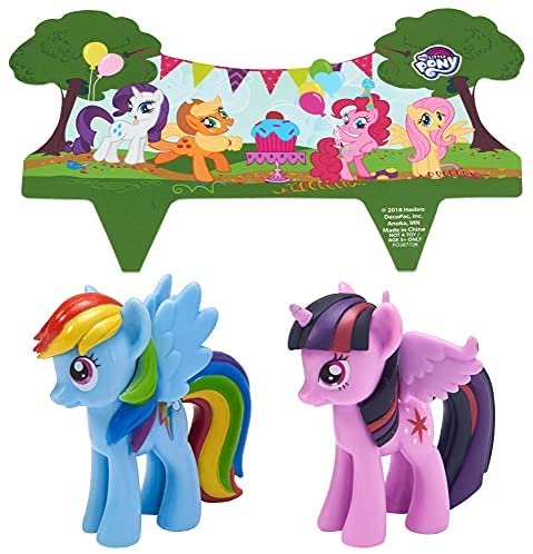 DECOPAC Set My Little Pony Cake Topper, 3-Piece Decorations with Rainbow Dash and Twilight Sparkle Ponies for Fun After the Birthday Party, 3