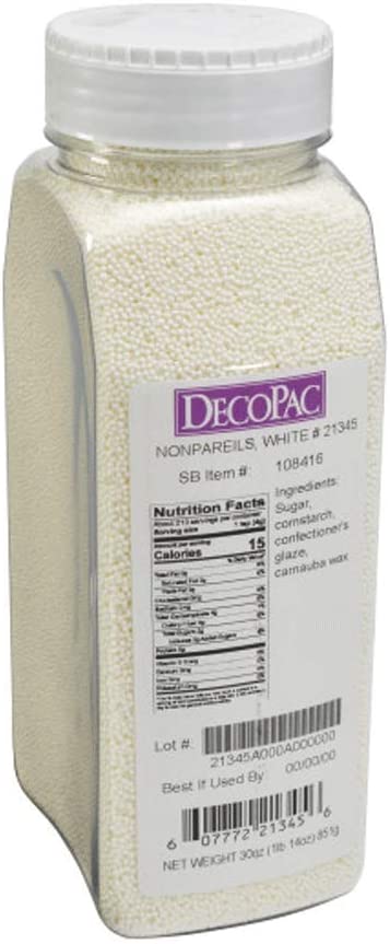 DECOPAC White Nonpareils, 30oz/85g, Fancy Sprinkles in Handheld Container, Edible Sprinkles For Celebration Cakes, Cupcakes, Cookies and Donuts