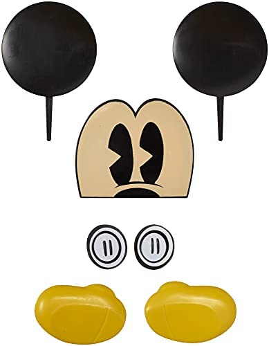 DecoSet Mickey Mouse Cake Topper, 7-Piece Topper Set with Ears, Eyes, Buttons and Shoes, Made of Food-Safe Plastic