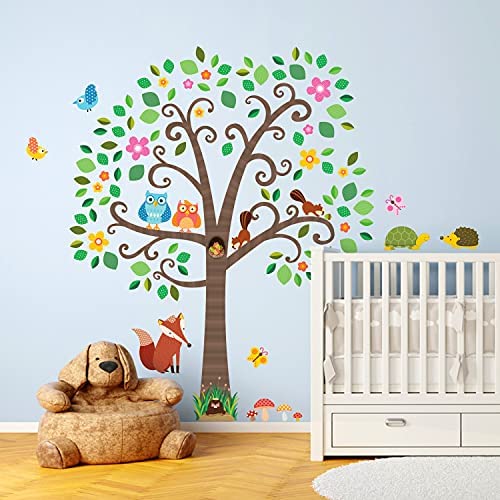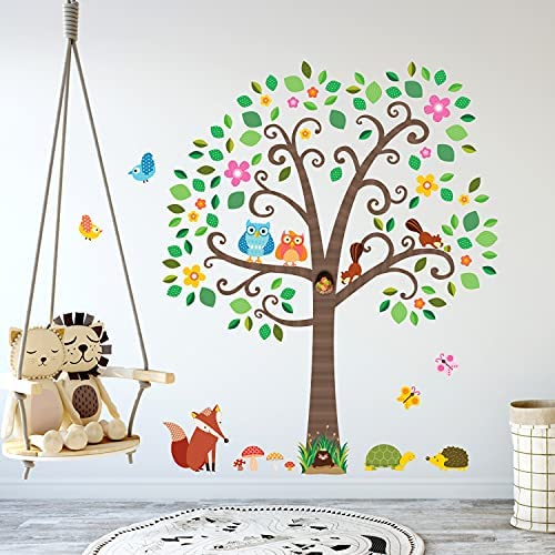 DECOWALL DA-1502N Large Scroll Tree and Animals Kids Wall Stickers Wall Decals Peel and Stick Removable Wall Stickers for Kids Nursery Bedroom Living Room décor