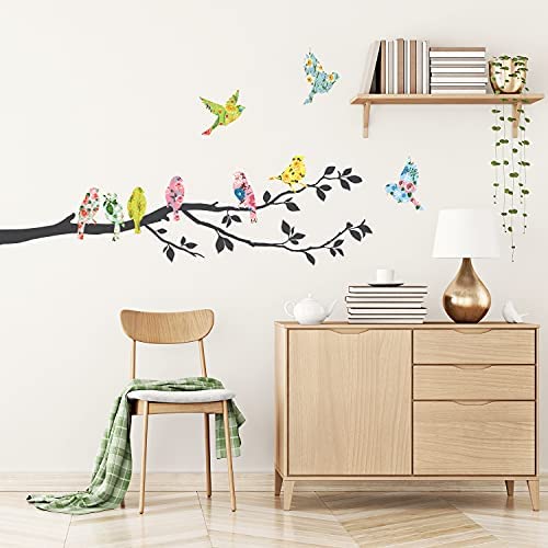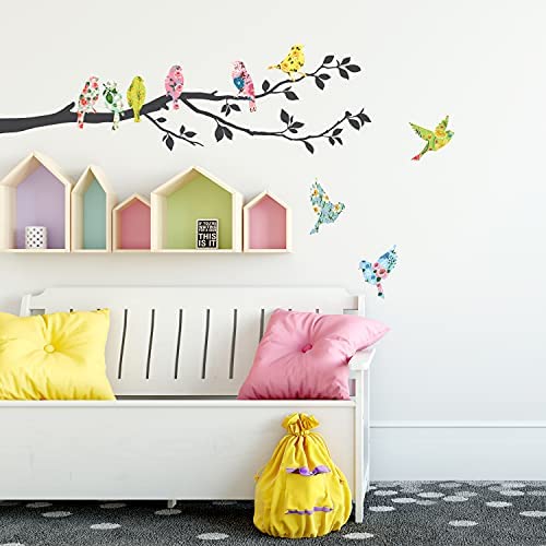 DECOWALL DA-1706 Floral Birds on Tree Kids Wall Stickers Wall Decals Peel and Stick Removable Wall Stickers for Kids Nursery Bedroom Living Room décor