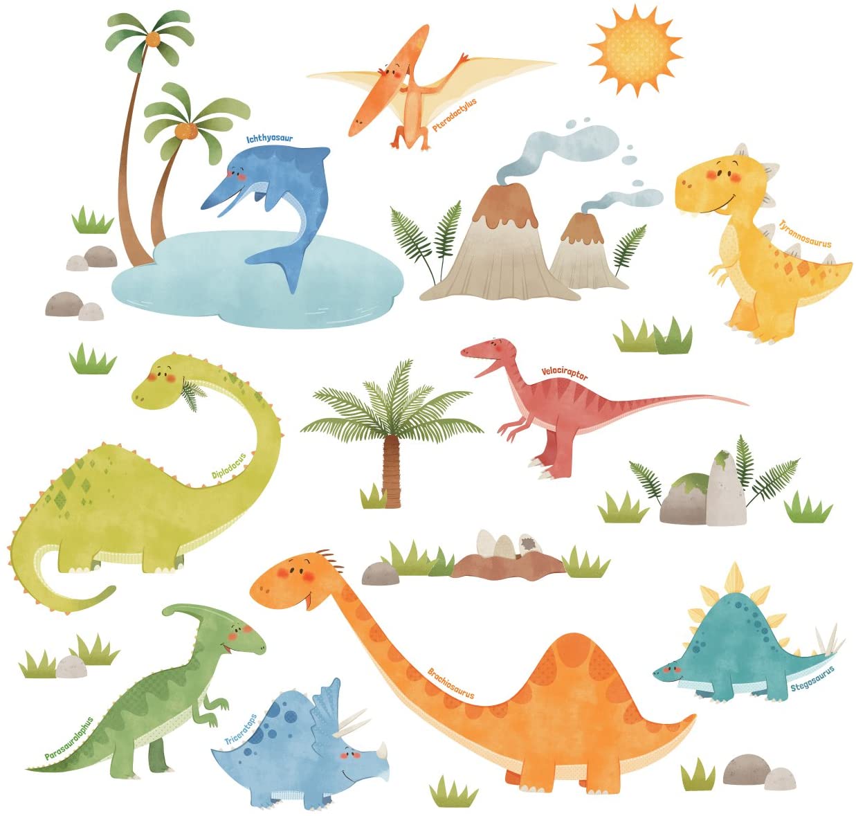 DECOWALL DS-8019 Dinosaurs Kids Wall Stickers Wall Decals Peel and Stick Removable Wall Stickers for Kids Nursery Bedroom Living Room (Small)