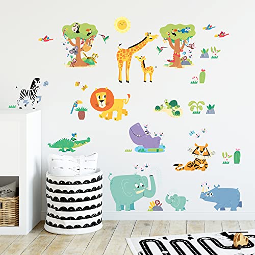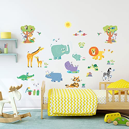 DECOWALL DW-1909 Happy Jungle Animals Kids Wall Stickers Wall Decals Peel and Stick Removable Wall Stickers for Kids Nursery Bedroom Living Room décor