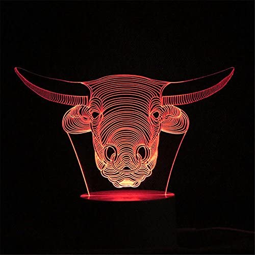 DeerBird Cattle Bull Head Shape 3D Optical Illusion LED 7 Color Changing USB Touch Night Light Table Desk Lamp with White Base and Keys Remote Controler