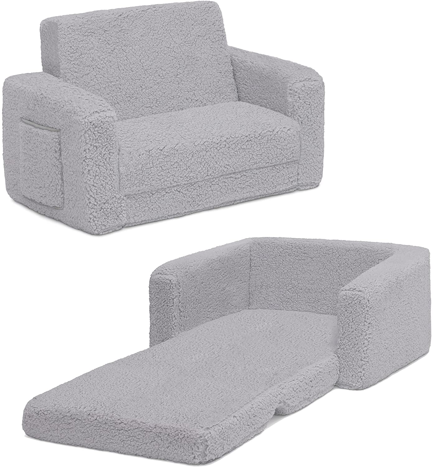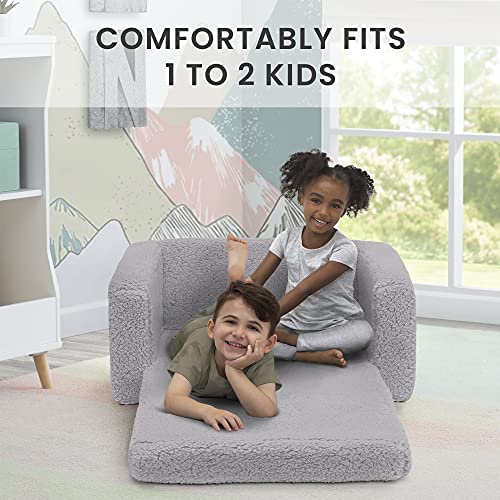 Delta Children Cozee Flip-Out Sherpa 2-in-1 Convertible Chair to Lounger for Kids, Grey