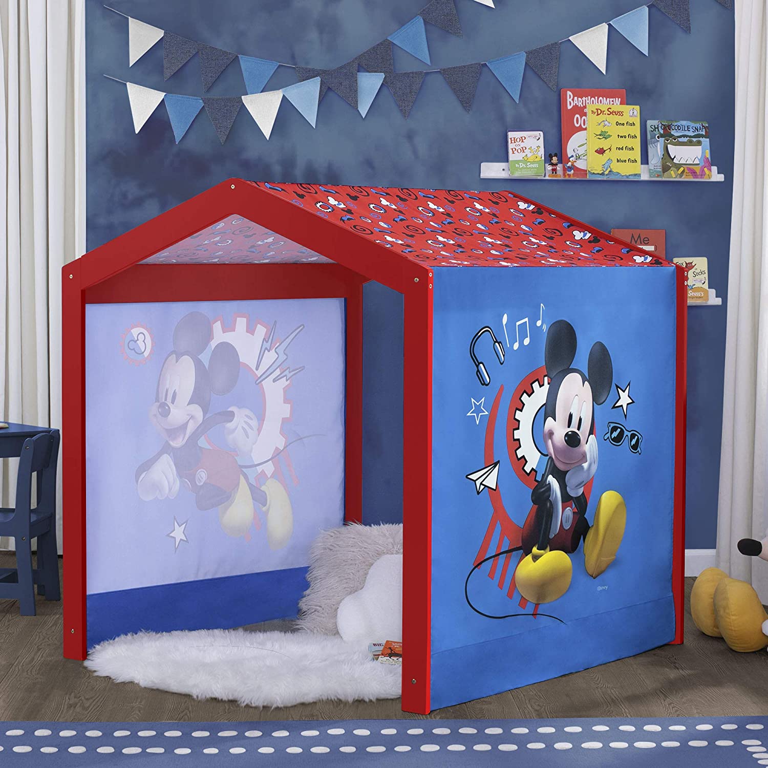 Delta Children Mickey Mouse Indoor Playhouse With Fabric Tent For Boys And Girls, Great Sleep Or Play Area For Kids, Fits Toddler Bed