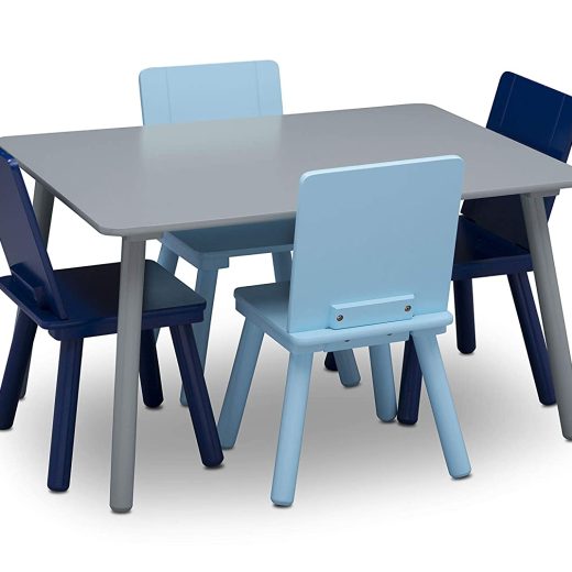 Delta Children Kids Table and Chair Set (4 Chairs Included) – Ideal for Arts & Crafts, Snack Time, Homeschooling, Homework & More, Grey/Blue
