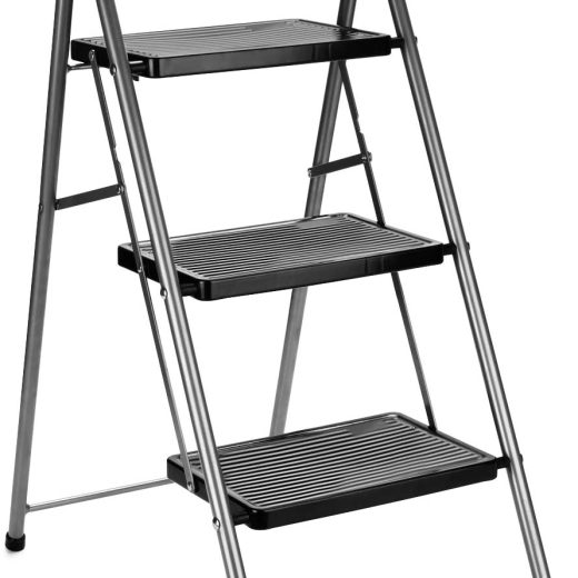 GS Certificate: For product quality and safety, Delxo step ladders have been approved by TUV with GS Certificate Size Of Ladder: Open: 14.8Lx 25.3Wx 34.6H, Folded: H37.5x 14.8Lx1.6Wx37.5H, Net Weight: 9.3 pounds, Maximum load: 330 lbs Delxo Safety Folding Step Ladder 3 Steps is made for you! Folding Design: Delxo 3 step stools come fully assembled! Space-saving design safely locks into place, Just tilt the ladder forward and release the metal lock which hides on the bottom of the top pedal, then lift the back of the top pedal. Non-marring leg keep floors avoiding scratches Widely Used: Delxo 3 step stools with a convenient handgrip, making the stool easy to climb and carry, its an ideal choice in your home and shop. Also can be used as a Chair or Little Pet Step Stool. Whether you need the extra height for cleaning, painting or simply to reach up high Security & Stability: Delxo steep stools With a non-slip rubber pattern, the extra-wide steps offer heel-to-toe foot support, eliminating foot pain and fatigue and allowing the user a completely stable, comfortable place to stand while working.
