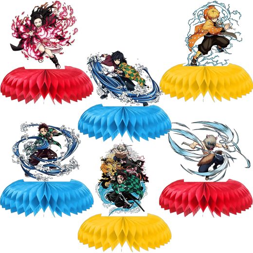 Demon Slayer Honeycomb Centerpieces, 6 Pcs Anime Birthday Party Decorations, 3D Double Sided Cake Topper, Anime Birthday Decorations Party Favors, Table Topper Decorations for Boys and Girls