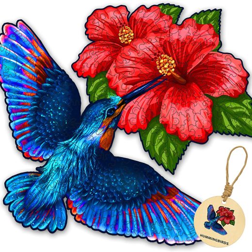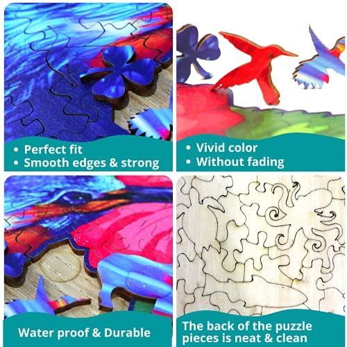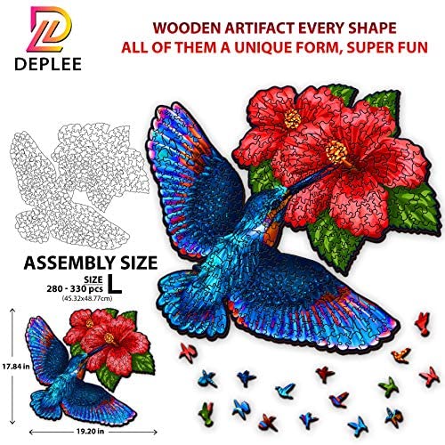 DEPLEE Wooden Puzzle Jigsaw, Hummingbird Hibiscus Flowers Puzzle Toy Artwork, Animal Unique Shape Creative, Best Challenge Game for Adult, Friend, Family- 464 Pcsu2013 17.8 x 19.2 in- Super King