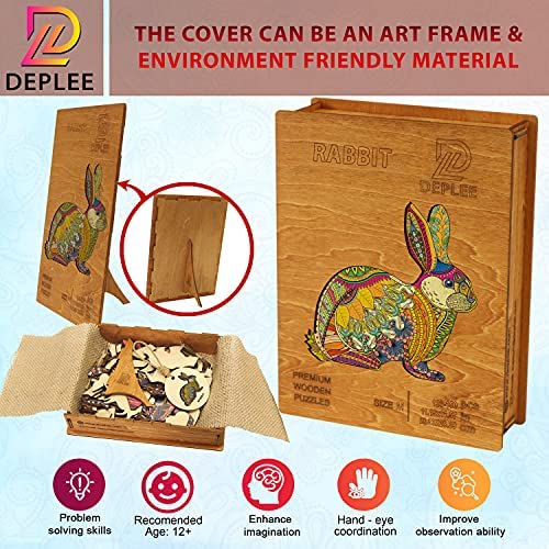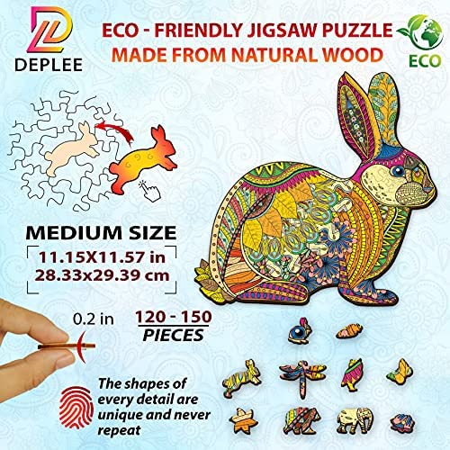 DEPLEE Wooden Puzzles for Adults Rabbit Wooden Jigsaw Puzzles Unique Shape Wooden Animal Puzzle Creative Challenge for Adults, Family, Friend|169 Pcsu2013 11.15×11.6 in (28.3 x 29.4 cm)|Medium