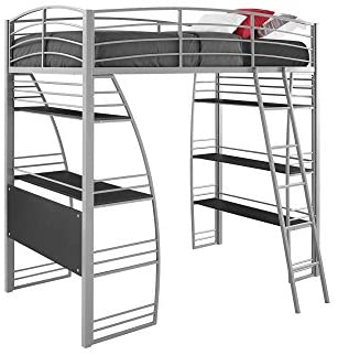 DHP Studio Loft Bunk Bed Over Desk and Bookcase with Metal Frame – Twin (Gray)