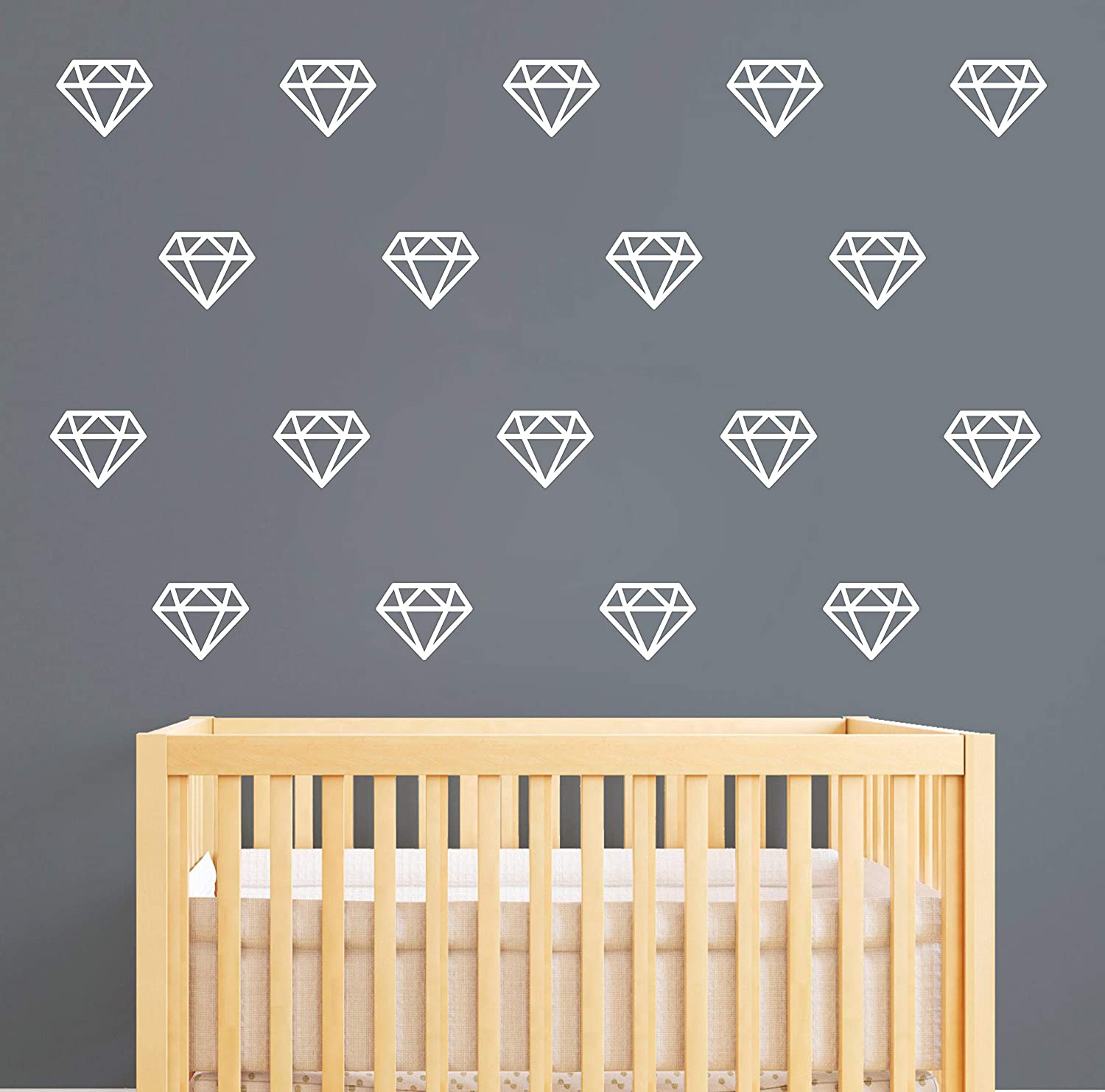 Diamond Wall Decals,Wall Art, Geometric Decor,Vinyl Wall Stickers for Baby Kids Bedroom Nursery Decoration(A15) (White)