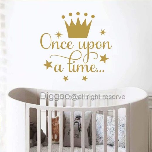 Diggoo Once Upon A Time Wall Decal Quote Princess Crown Wall Decal Princess Room Decor Girls Nursery Wall Art Sticker (Gold,14