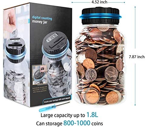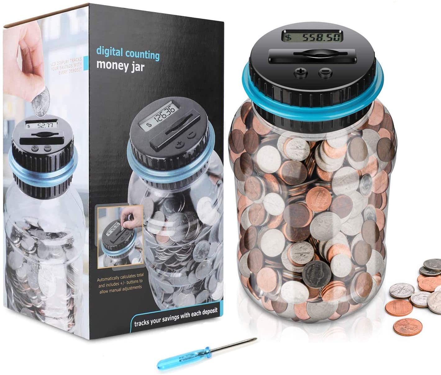 Digital Piggy Bank, Large-Capacity Coin Bank, Counting Money Jar, Electronic Digital Counting Piggy Bank with LCD for Girls Boys Kids Adults as Christmas Birthday New Years Day Gifts (Blue)
