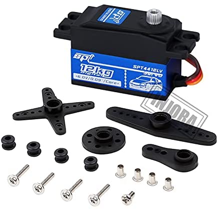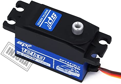 Features: Made of high quality metal material, durable to use for a long service time Its simple to install and remove, Light weight, convenient to use and carry out High performance digital standard servo, high sensitivity, high reliability Reinforced metal gears and lower noise, its better for accuracy Suit for 1/10 RC Touring Drift Car, RC Helicopter Model Specifications: Item Number: SPT4412LV Dead band:4µs Neutral Position:1500µs/330hz Motor: Core motor Remote control Angle:90-120°±2° 500µs-2500µs:180°±5° Voltage range:4.8V-6.0V Operating Speed(4.8V):0.11/60° Operating Speed(6.0V):0.09/60° Stall Torque(4.8V):10 kg.cm Stall Torque(6.0V):12 kg.cm Dimensions:40X20X28.3mm Weight: 50g Connector Wire Length: JR 260 mm Bearing: 2BB Package Included: 1 * RC Car SPT4412LV Servo