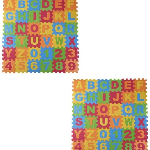 DIMPLE Kids Foam Play Mat (72 Pieces Total) 6.25 x 6.25 Inches Interlocking Alphabet and Numbers Floor Puzzle Colorful EVA Tiles Girls, Boys Soft, Reusable, Easy to Clean (2 Pack of 36)